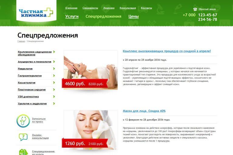 - составили структуру сайта (главная, услуги, специалисты, статьи, акции, контакты)