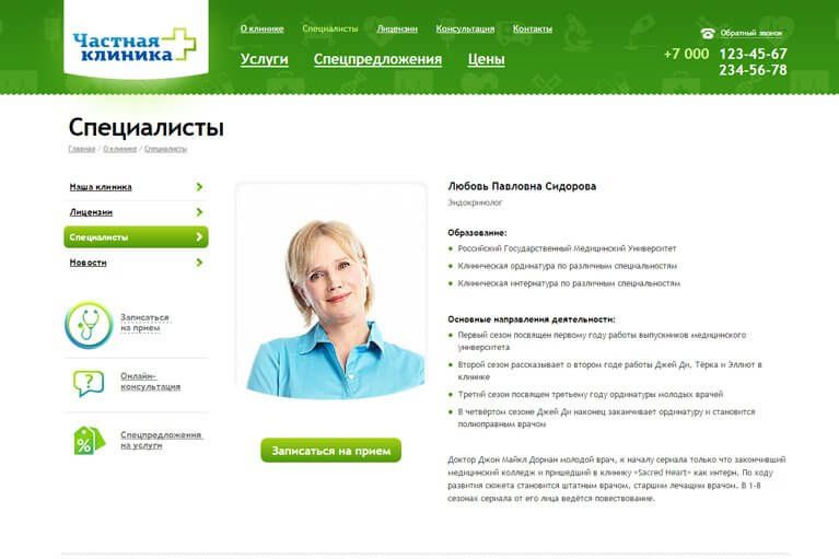 Клиент получил современный корпоративный сайт китайской традиционной медицины с 23 видами услуг (от нарушения обмена веществ до детских заболеваний), разделом из 30 специалистов учреждения и блоком с новостями и акциями.
